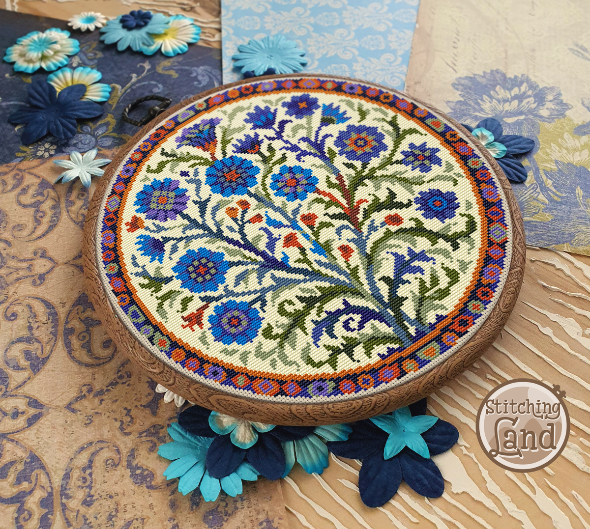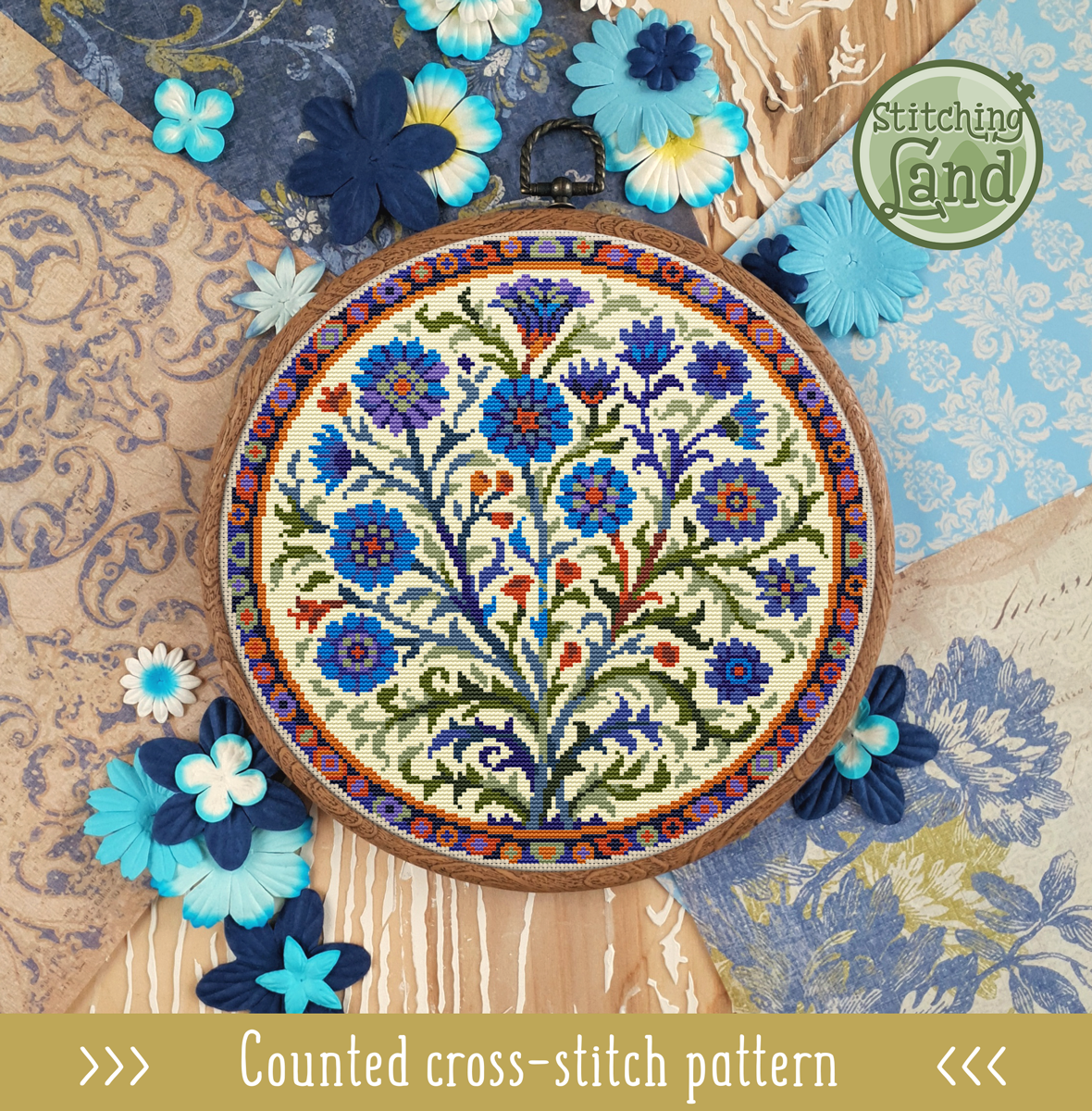 Art Nouveau Blue Flowers Cross Stitch Pattern