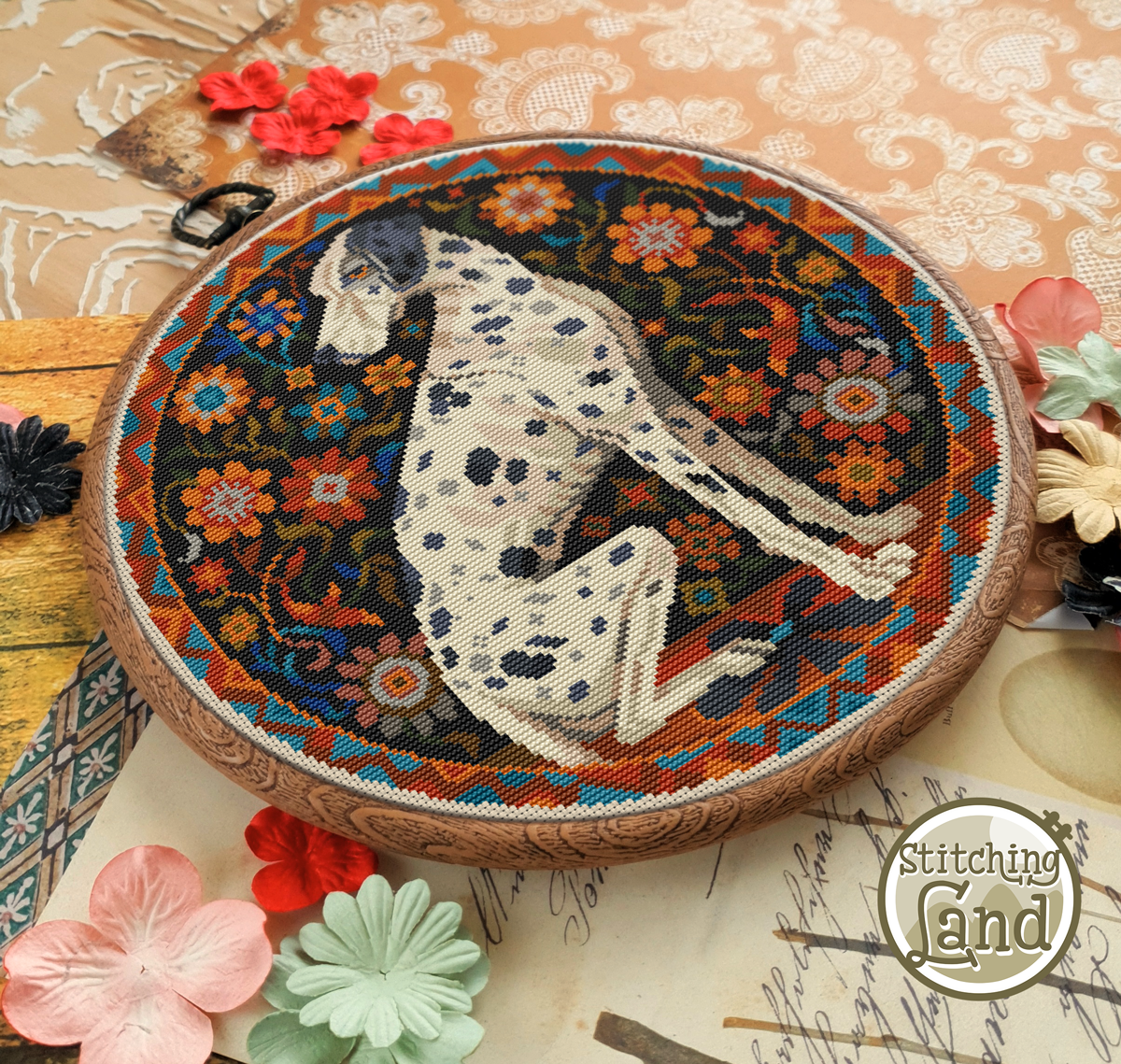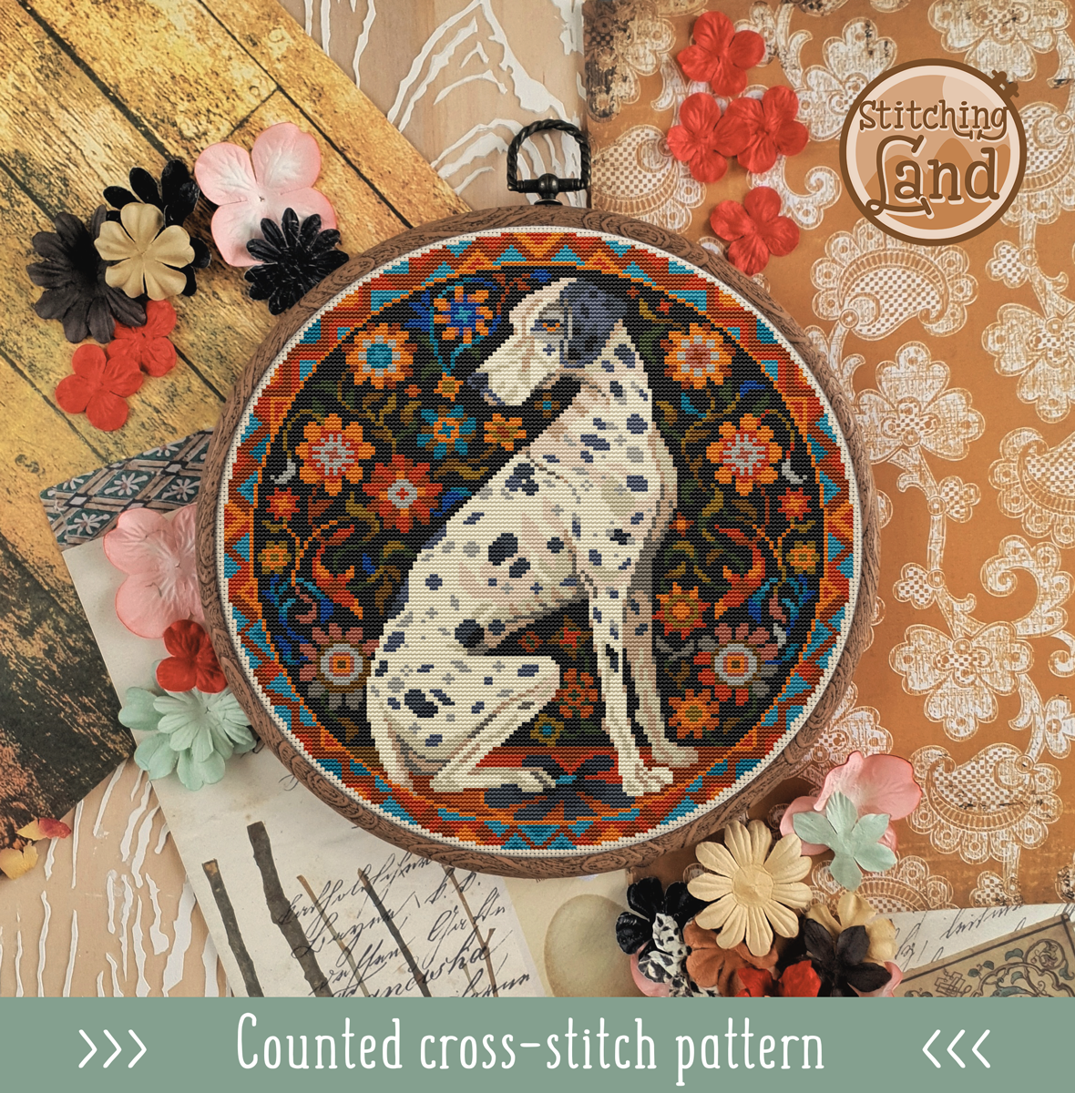 Art Nouveau Dalmatian Cross Stitch Pattern