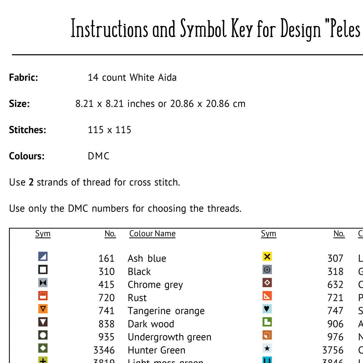 - Pattern in color symbols with floss legend on several sheets (ideal for printing);